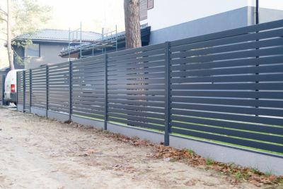 Металлическое горизонтальные панельные ограждения может быть выполнен сварным (в виде жесткой рамы, заполненной профилями различной ширины - 20/40/80/100x20 мм) или безрамным (в этом случае профиля крепятся через специальный П - образный профиль с определенным шагом). Особым спросом пользуются профиля с имитацией дерева, которые в различных вариантах интегрированы в конструкцию забора и придают ему исключительно привлекательный вид. Изделия отличаются высокой стойкостью к воздействию коррозии, обеспеченной покрытием горячим цинком и порошковой краской.