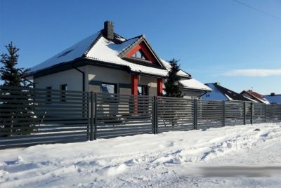 Заборы металлические с горизонтальным расположением профилей пользуются все большей популярностью. Вы можете выбрать такое сочетание профилей и расстояний между ними, чтобы забор максимально украсил Ваш участок и вписался в архитектуру дома. В большинстве случаев мы сталкиваемся с конфликтом интересов, когда нужно совместить приватность и красоту самого здания. Горизонтальный забор не должен закрыть дом, а должен быть его обрамлением и частью единого архитектурного решения. Несмотря на мнение специалистов, клиенты часто настаивают на преобладании приватности и мы вынуждены реагировать на такой спрос предлагая металлические ограждения с высокой степенью закрытости.